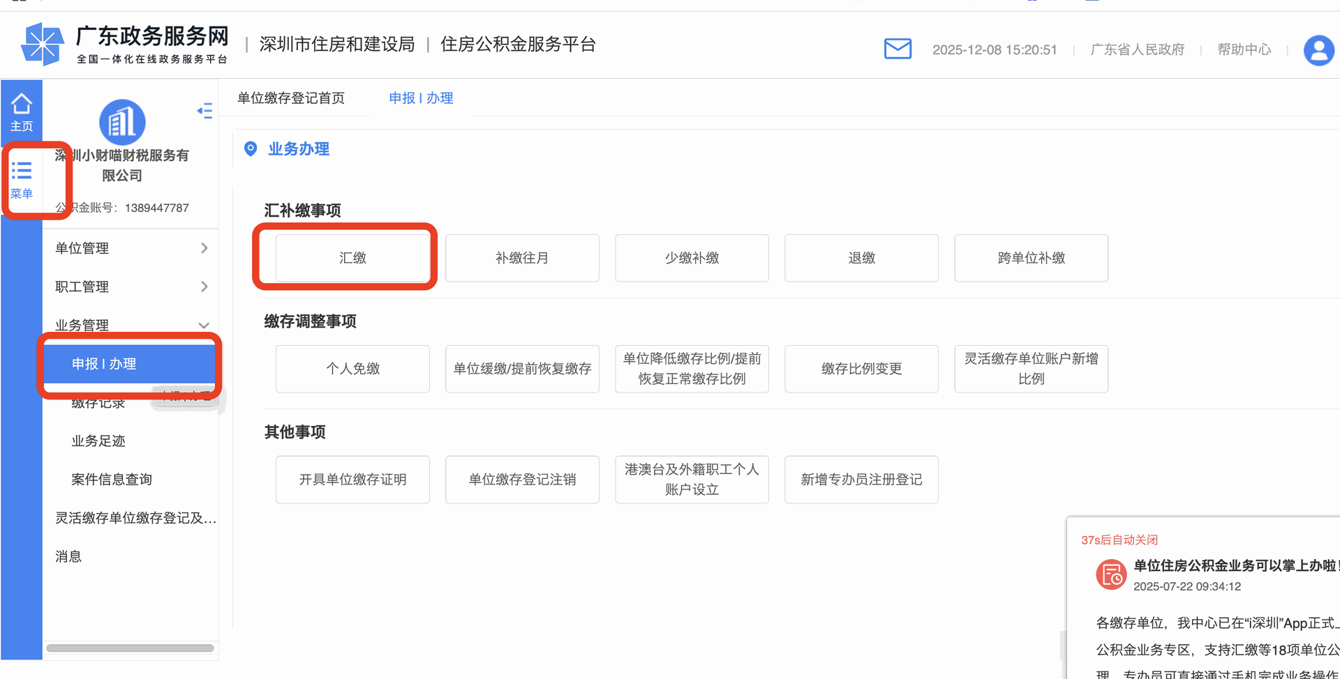 七、查看办理结果:选择业务管理—缴存记录—登记中查看,状态显示“待处理”, 意思是未到扣款日, 待扣款日状态显示“成功”后,点击查看详情,可以下载回执。